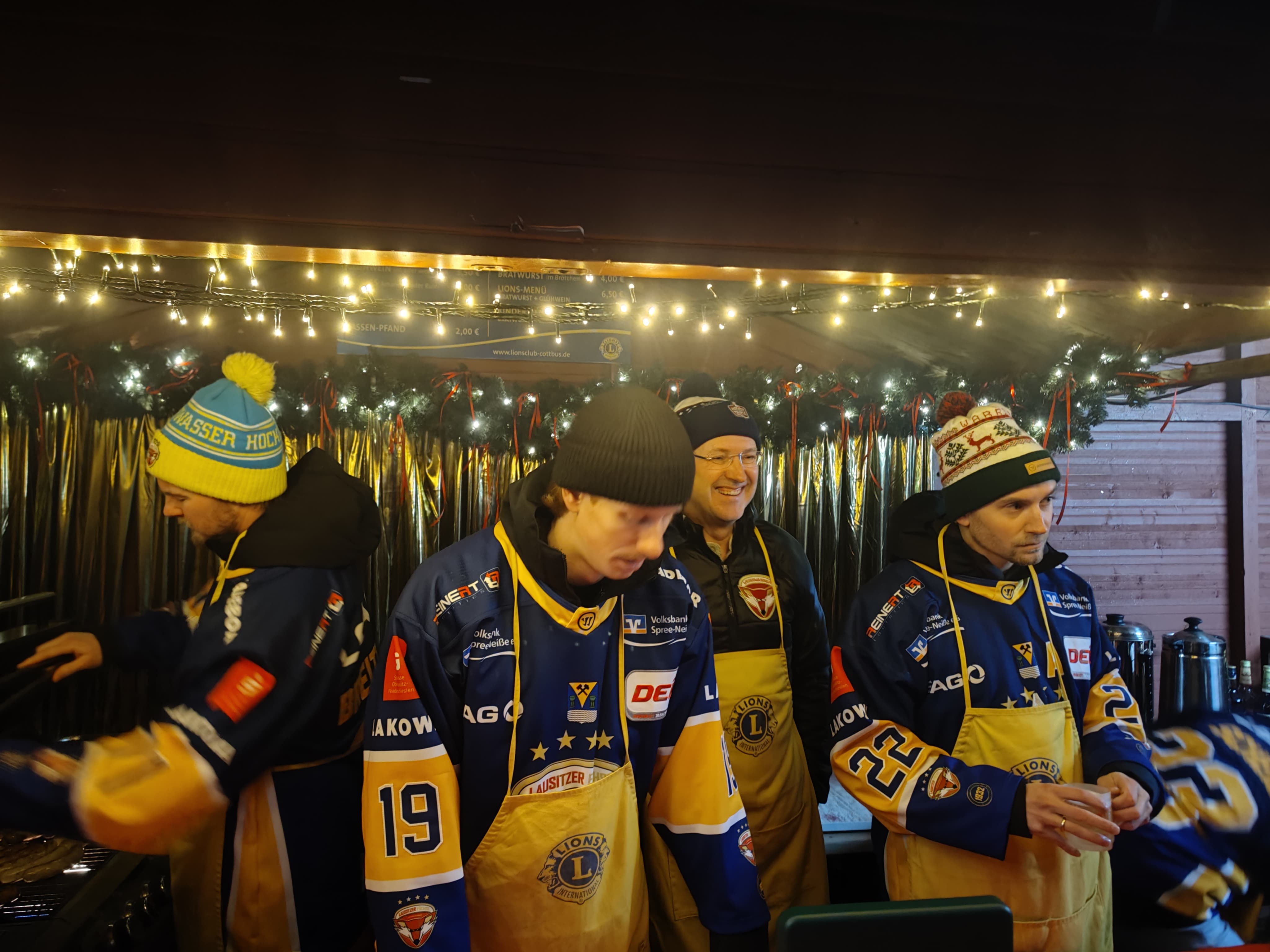 Der Besuch der Lausitzer Füchse am Stand des Lions Club Cottbus auf dem Weihnachtsmarkt war dafür ein starkes und sichtbares Zeichen. Spieler, Fans und Verantwortliche kamen miteinander ins Gespräch und zeigten eindrucksvoll, wie Sport und gesellschaftliche Verantwortung miteinander verbunden sein können.