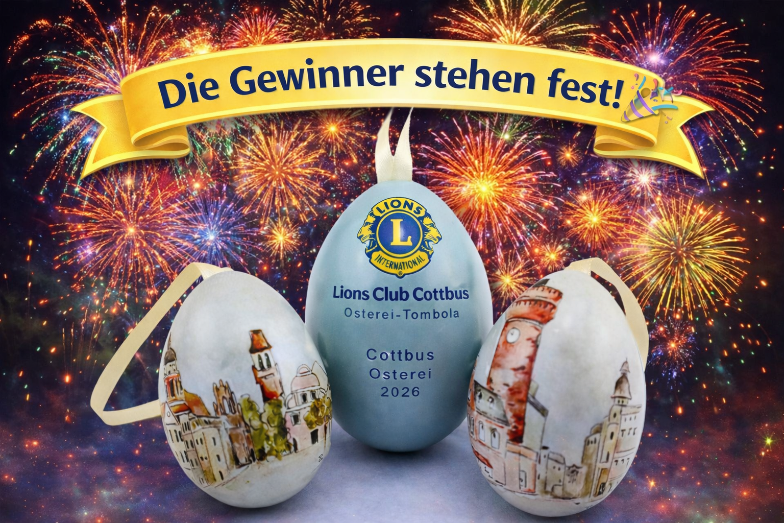 Jedes verkaufte Los nimmt an der Verlosung teil. Die Ziehung der Losnummern findet unter Ausschluss des Rechtsweges statt. Mit dem Erwerb des Loses/Ostereis werden die Teilnahmebedingungen akzeptiert. Es sind nur Lose gewinnberechtigt, die vor dem 2. April 2026 verkauft wurden.